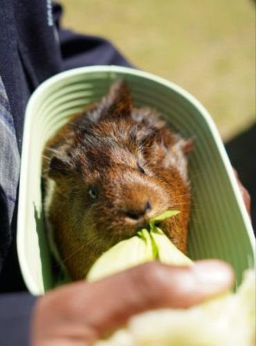 When we don’t have baby rabbits, we bring older rabbits. We set up a small enclosure on the ground for them to run around in. Two children at one time can sit in this enclosure with the rabbits so they can pat and feed them but not pick them up. This is for the children’s safety and the rabbit’s wellbeing.